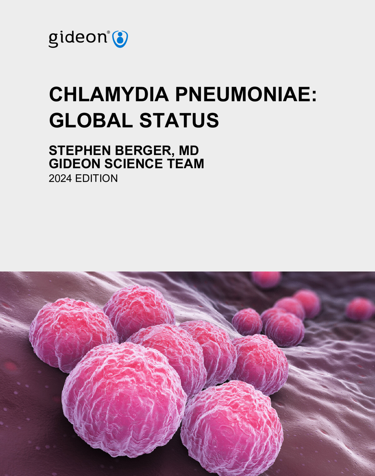 Chlamydia pneumoniae: Global Status is one in a series of GIDEON ebooks which explore all individual infectious diseases, drugs, vaccines, outbreaks, surveys and pathogens in every country of the world. Data are based on the GIDEON web application (www.gideononline.com) which relies on standard text books, peer-review journals, Health Ministry reports and ProMED, supplemented by an ongoing exhaustive search of the medical literature.