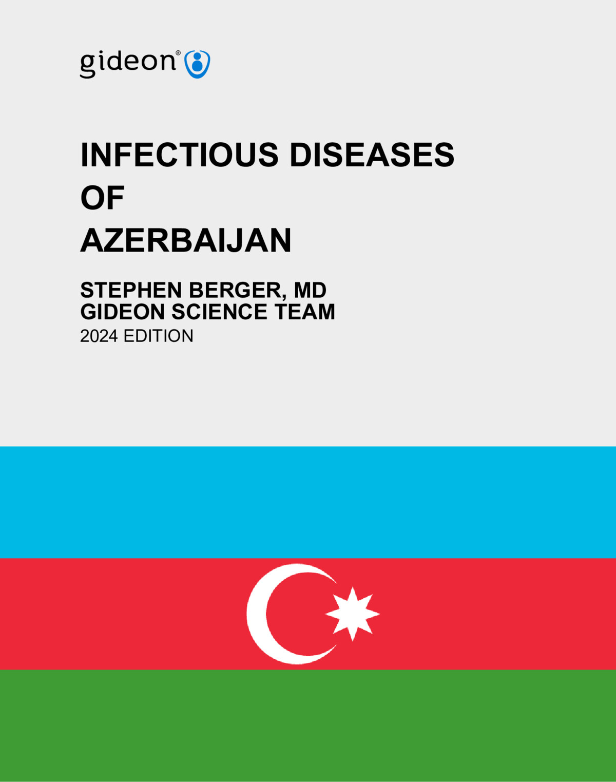 Infectious Diseases of Azerbaijan is one in a series of GIDEON ebooks which explore all individual infectious diseases, drugs, vaccines, outbreaks, surveys and pathogens in every country of the world. Data are based on the GIDEON web application (www.gideononline.com) which relies on standard text books, peer-review journals, Health Ministry reports and ProMED, supplemented by an ongoing search of the medical literature.