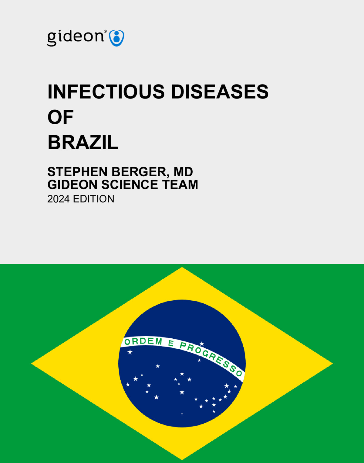 Infectious Diseases of Brazil is one in a series of GIDEON ebooks which explore all individual infectious diseases, drugs, vaccines, outbreaks, surveys and pathogens in every country of the world. Data are based on the GIDEON web application (www.gideononline.com) which relies on standard text books, peer-review journals, Health Ministry reports and ProMED, supplemented by an ongoing search of the medical literature.