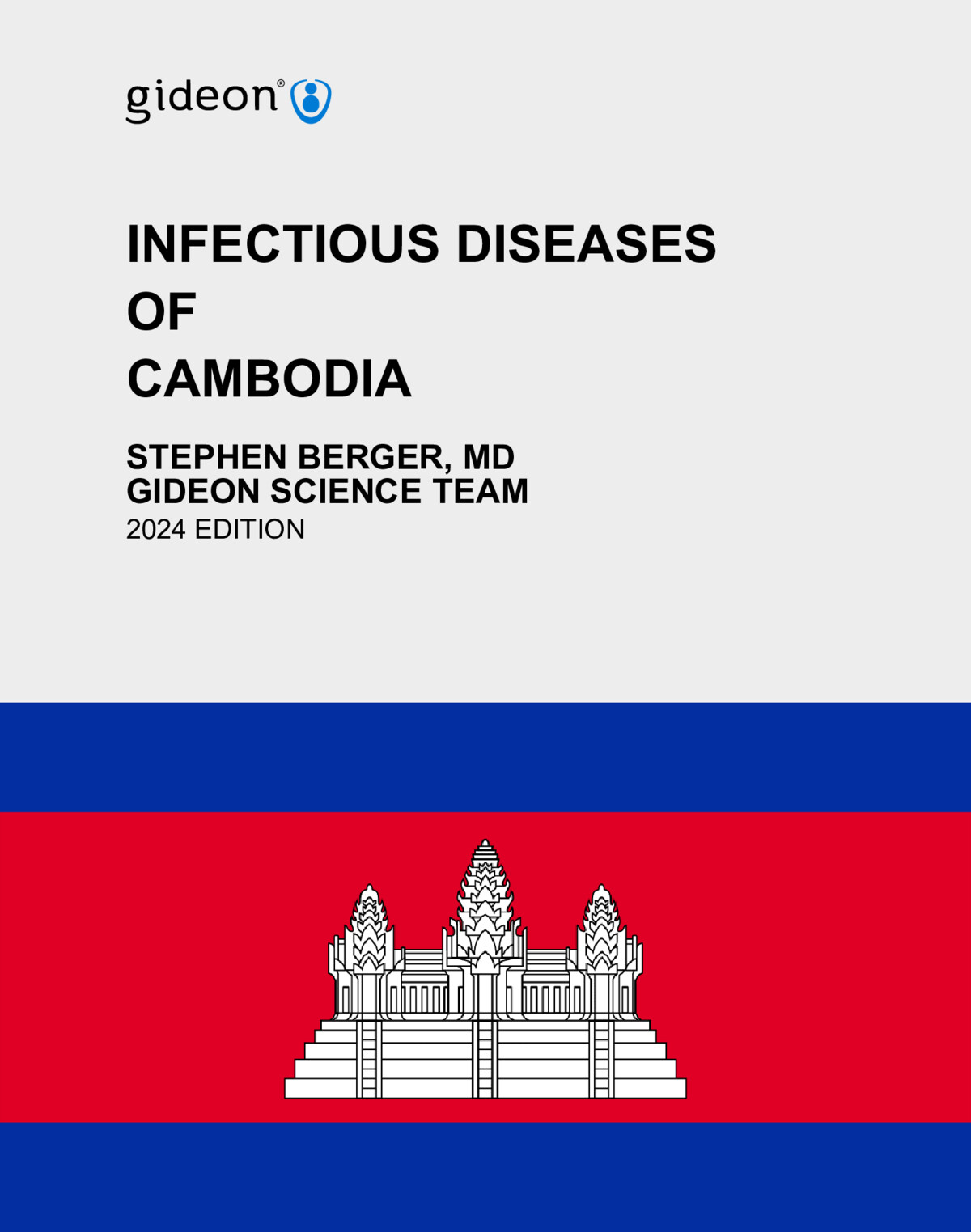 Infectious Diseases of Cambodia is one in a series of GIDEON ebooks which explore all individual infectious diseases, drugs, vaccines, outbreaks, surveys and pathogens in every country of the world. Data are based on the GIDEON web application (www.gideononline.com) which relies on standard text books, peer-review journals, Health Ministry reports and ProMED, supplemented by an ongoing search of the medical literature.