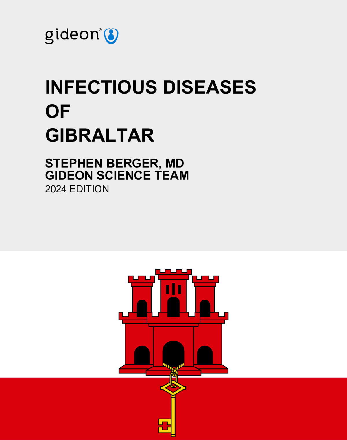 Infectious Diseases of Gibraltar is one in a series of GIDEON ebooks which explore all individual infectious diseases, drugs, vaccines, outbreaks, surveys and pathogens in every country of the world. Data are based on the GIDEON web application (www.gideononline.com) which relies on standard text books, peer-review journals, Health Ministry reports and ProMED, supplemented by an ongoing search of the medical literature.