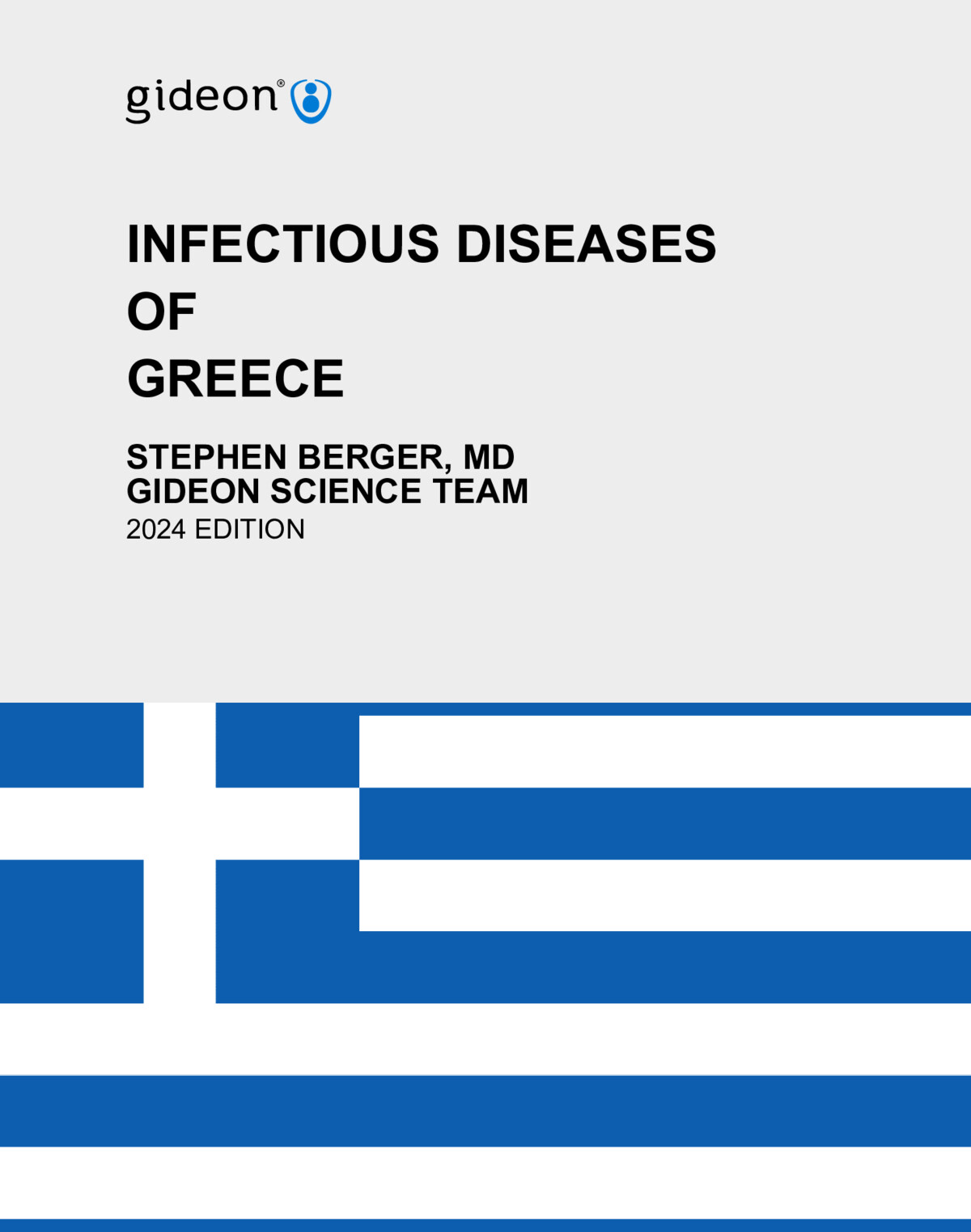 Infectious Diseases of Greece is one in a series of GIDEON ebooks which explore all individual infectious diseases, drugs, vaccines, outbreaks, surveys and pathogens in every country of the world. Data are based on the GIDEON web application (www.gideononline.com) which relies on standard text books, peer-review journals, Health Ministry reports and ProMED, supplemented by an ongoing search of the medical literature.