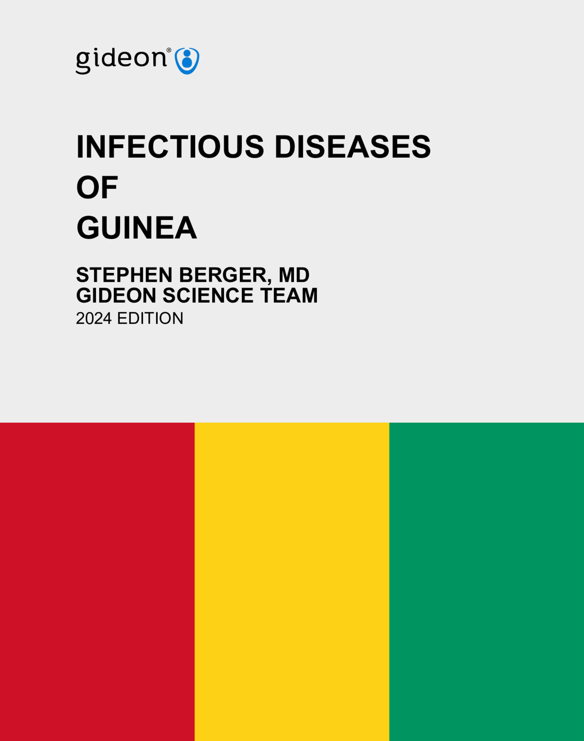 Infectious Diseases of Guinea is one in a series of GIDEON ebooks which explore all individual infectious diseases, drugs, vaccines, outbreaks, surveys and pathogens in every country of the world. Data are based on the GIDEON web application (www.gideononline.com) which relies on standard text books, peer-review journals, Health Ministry reports and ProMED, supplemented by an ongoing search of the medical literature.