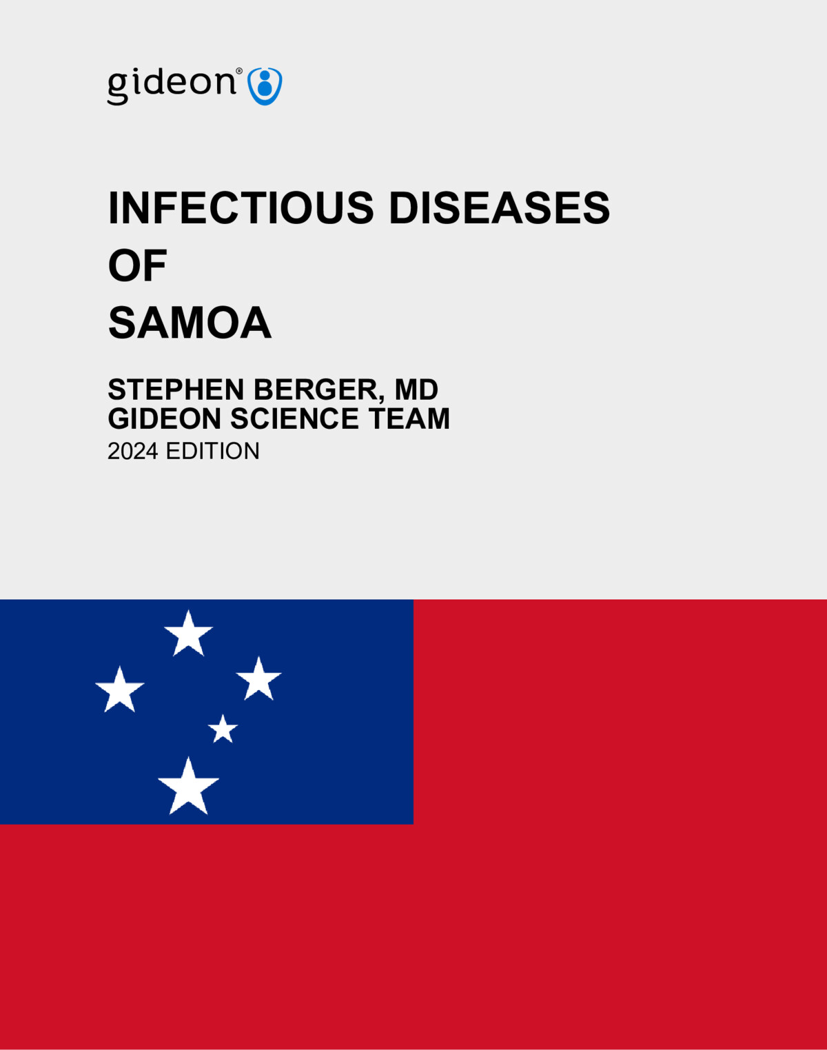Infectious Diseases of Samoa is one in a series of GIDEON ebooks which explore all individual infectious diseases, drugs, vaccines, outbreaks, surveys and pathogens in every country of the world. Data are based on the GIDEON web application (www.gideononline.com) which relies on standard text books, peer-review journals, Health Ministry reports and ProMED, supplemented by an ongoing search of the medical literature.