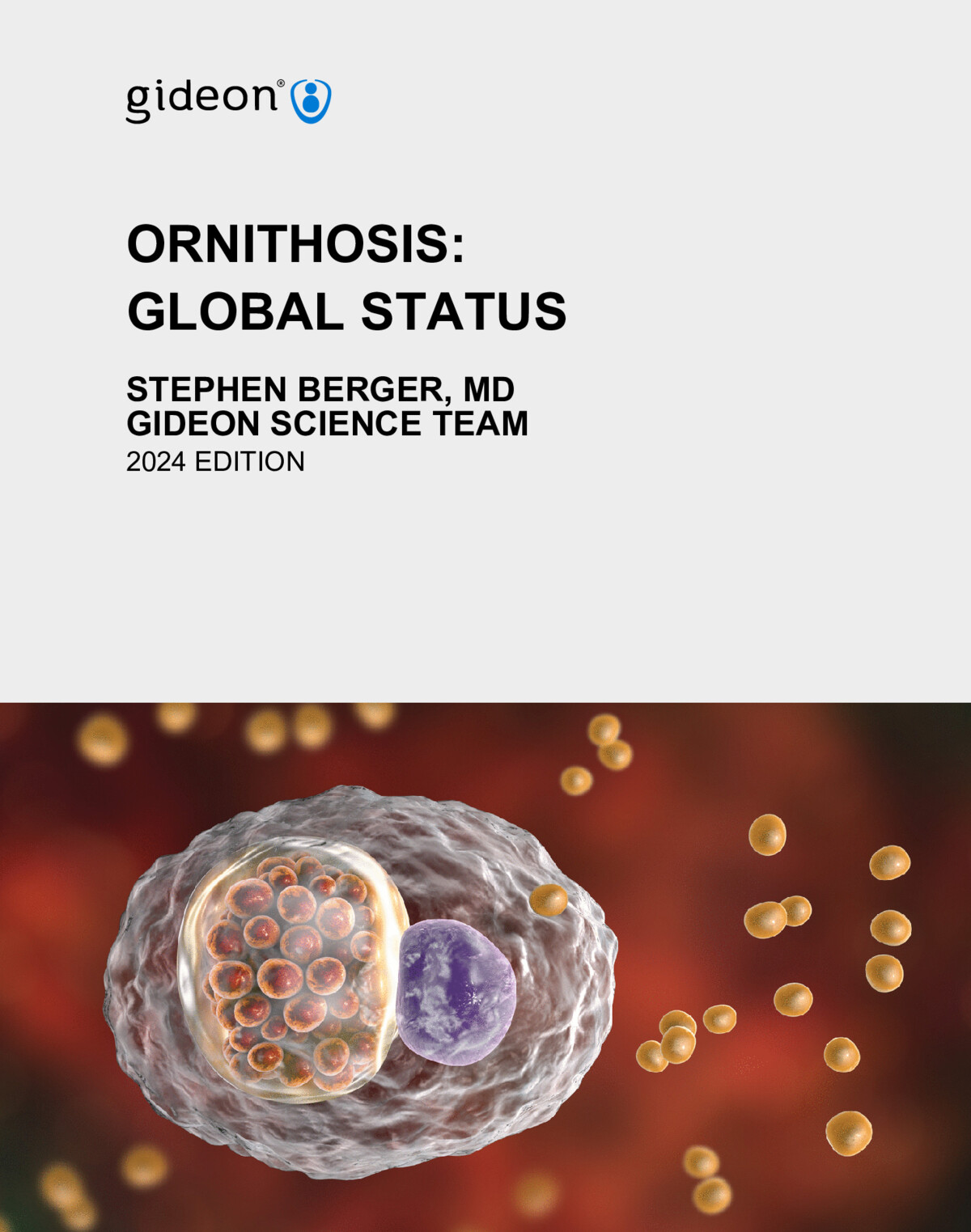 Ornithosis: Global Status is one in a series of GIDEON ebooks which explore all individual infectious diseases, drugs, vaccines, outbreaks, surveys and pathogens in every country of the world. Data are based on the GIDEON web application (www.gideononline.com) which relies on standard text books, peer-review journals, Health Ministry reports and ProMED, supplemented by an ongoing exhaustive search of the medical literature.