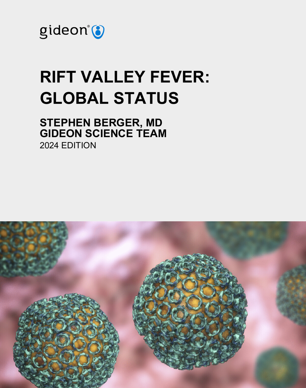 Rift Valley Fever: Global Status is one in a series of GIDEON ebooks which explore all individual infectious diseases, drugs, vaccines, outbreaks, surveys and pathogens in every country of the world. Data are based on the GIDEON web application (www.gideononline.com) which relies on standard text books, peer-review journals, Health Ministry reports and ProMED, supplemented by an ongoing exhaustive search of the medical literature.