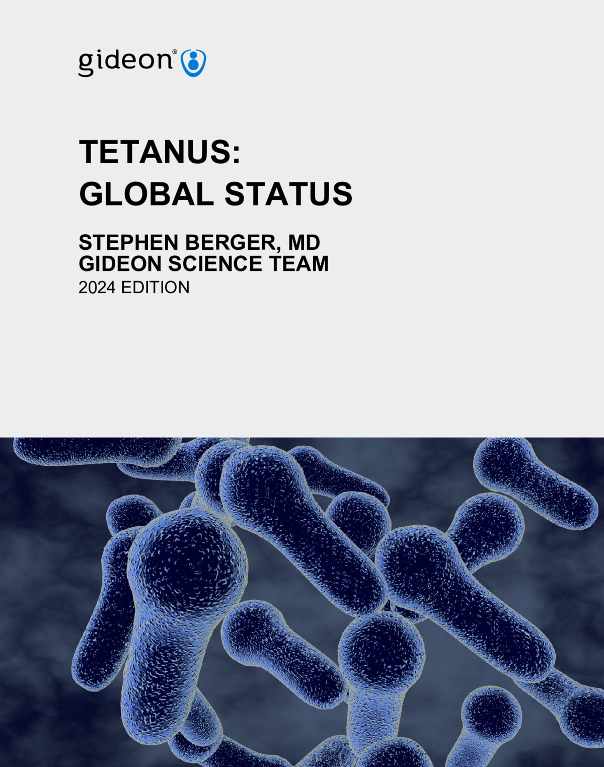 Tetanus: Global Status is one in a series of GIDEON ebooks which explore all individual infectious diseases, drugs, vaccines, outbreaks, surveys and pathogens in every country of the world. Data are based on the GIDEON web application (www.gideononline.com) which relies on standard text books, peer-review journals, Health Ministry reports and ProMED, supplemented by an ongoing exhaustive search of the medical literature.